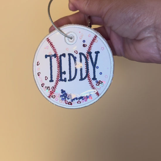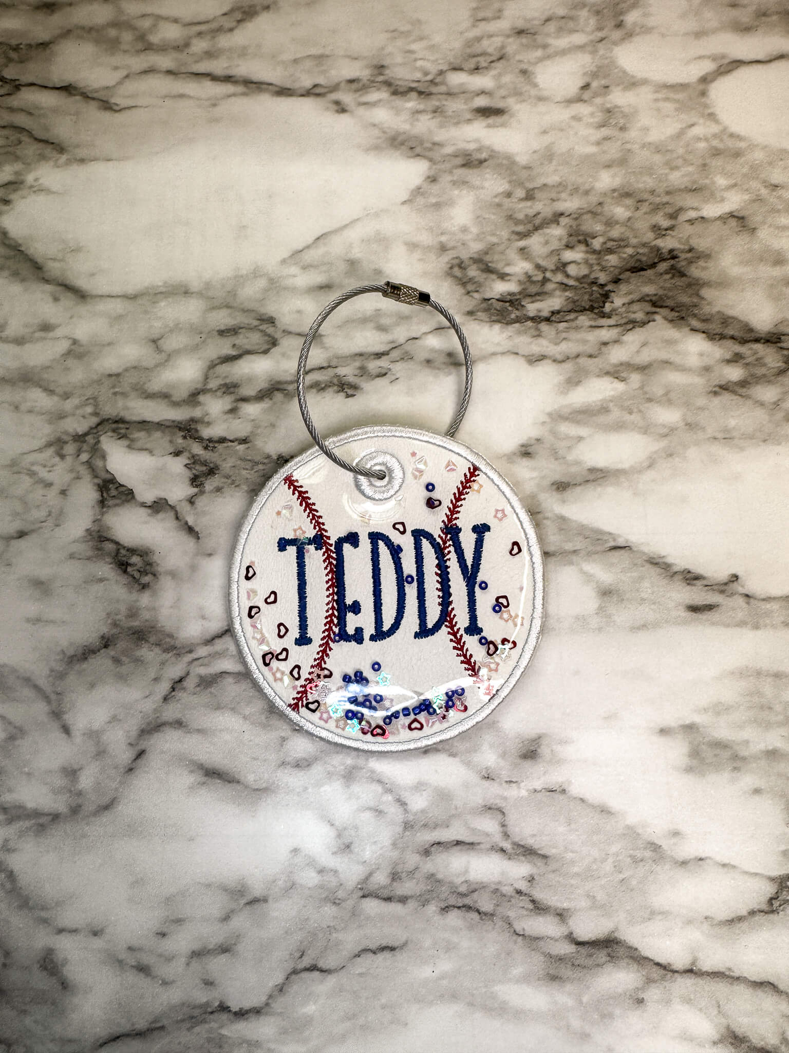 Show your love for the game with this embroidered baseball shaker bag tag! A fun way to personalize your sports bag, Bogg bag, or backpack. This tag makes it easy to spot your gear while adding a little pizazz!